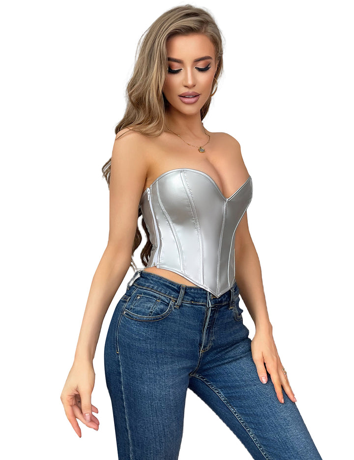12 Pieces Plastic Bones Silver Imitation Leather Zipper Lace Up Corset