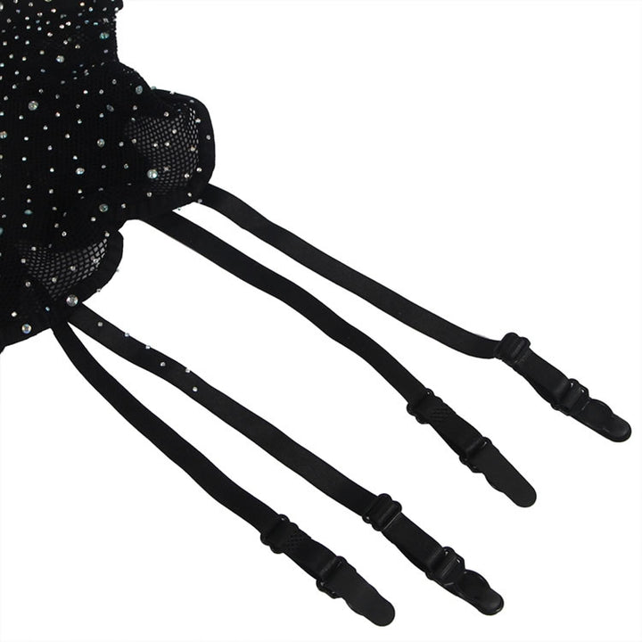 Black Sexy Diamond Fishnet Bodystocking with Gloves