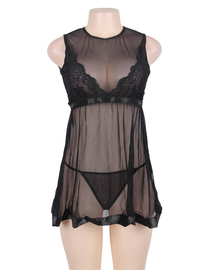 Black Sheer Mesh Babydoll Lingerie Set With G String