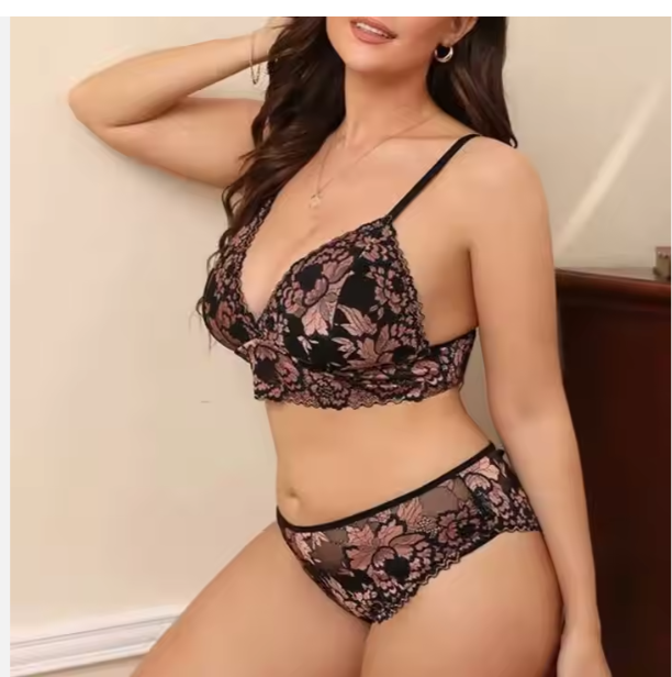Women Sexy Backless Two Piece Transparent Hot Fashion Show Lingeries Black Flower Femme Sexy Lingerie Plus Size Sets