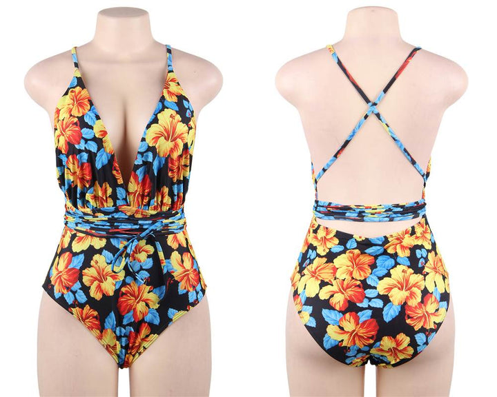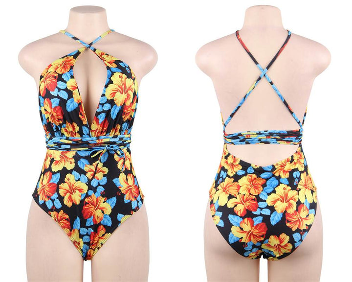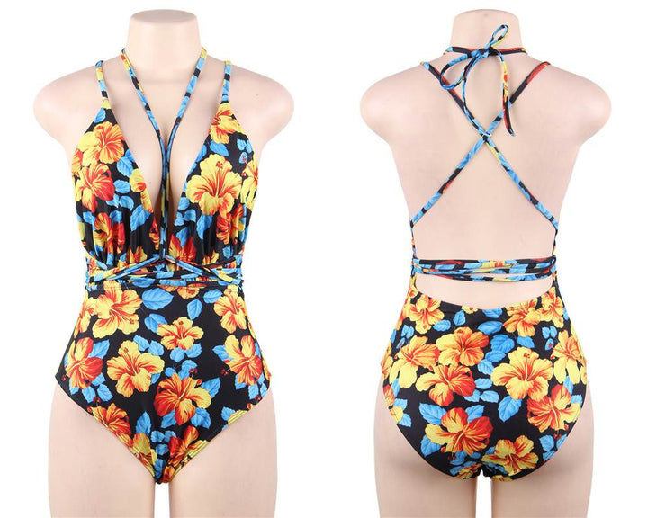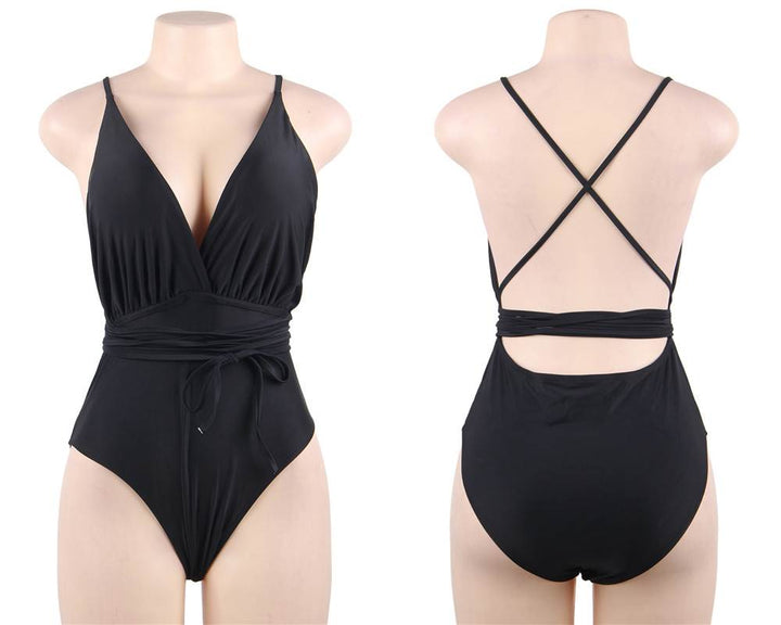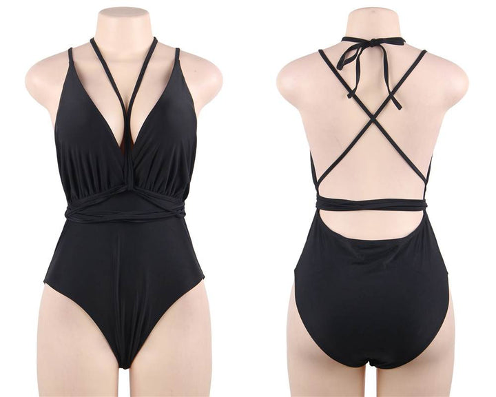 Deep V Tie Up Bathing Suit Monokini Multiple Wearing Way One Piece Swimsuit