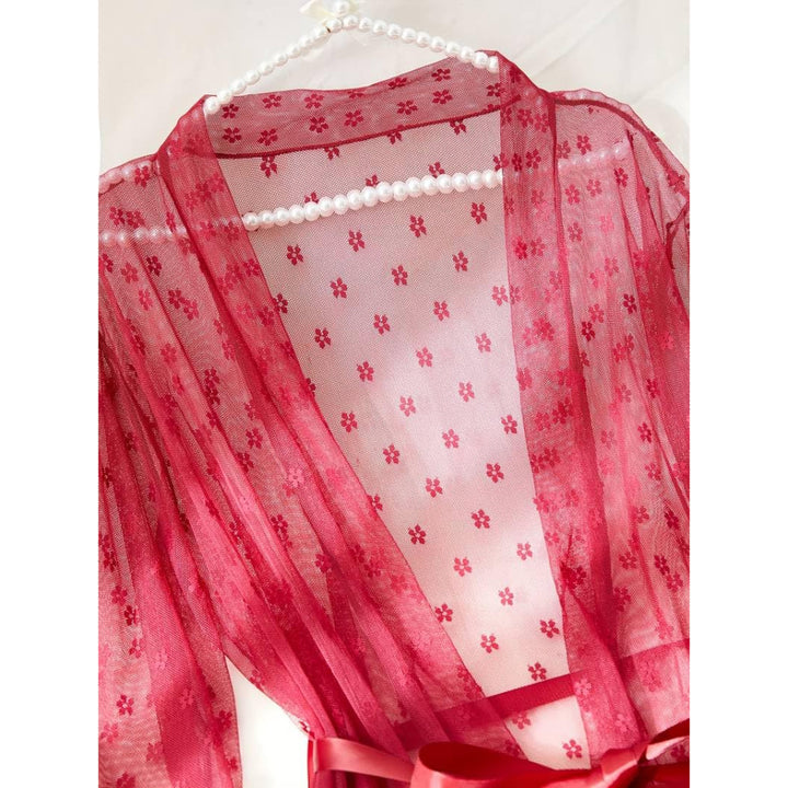 3-Piece Floral Lace Lingerie Set with Sheer Mesh Robe Elegance Allure & ComfortS