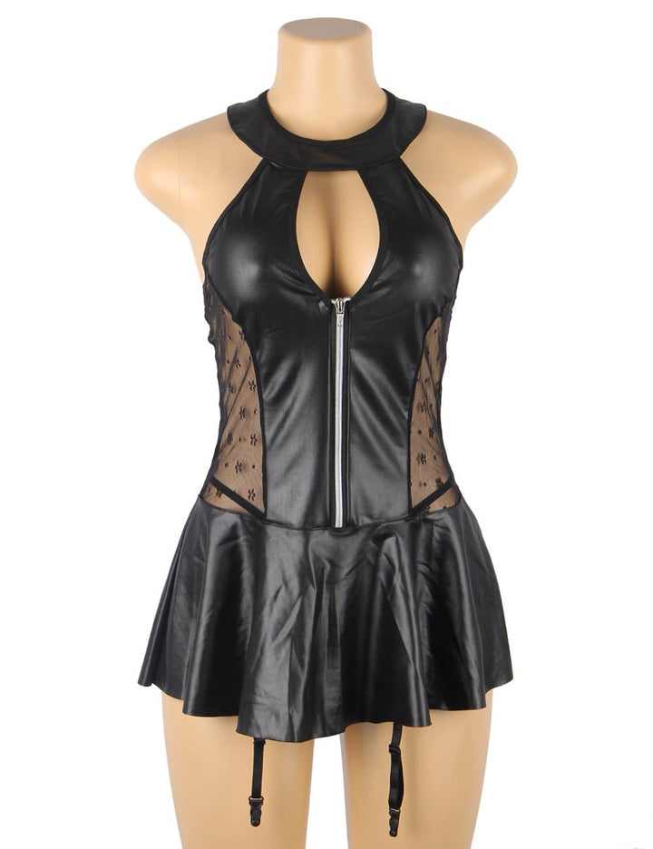 Halter Leather Lace Stitching Gartered Lingerie- R80941