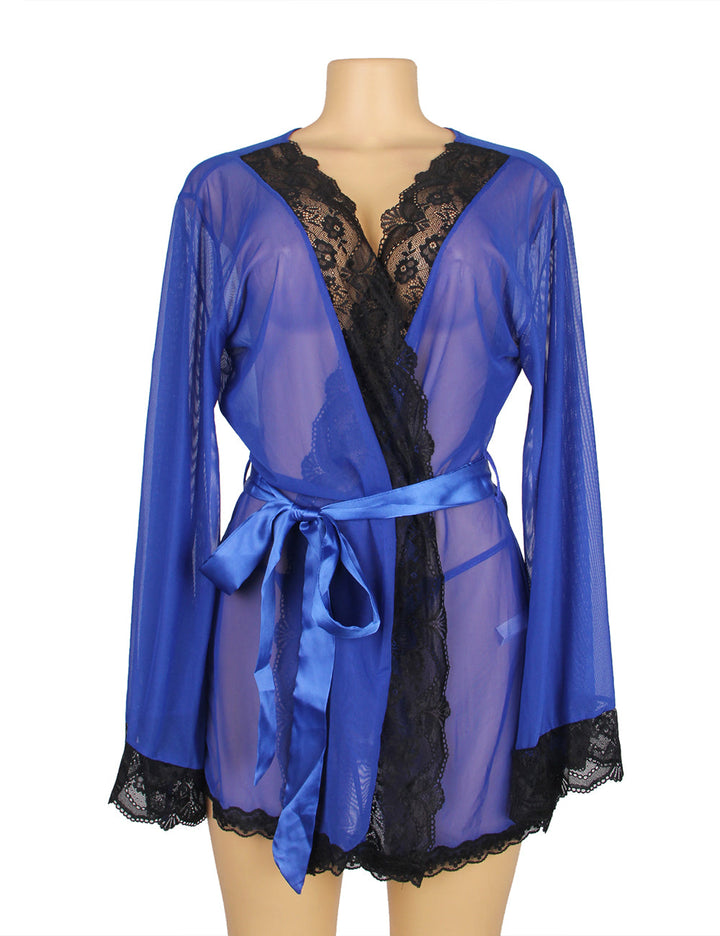 Long Sleeve Mesh Sleepwear With Belt (3 Colors) - R81157-2