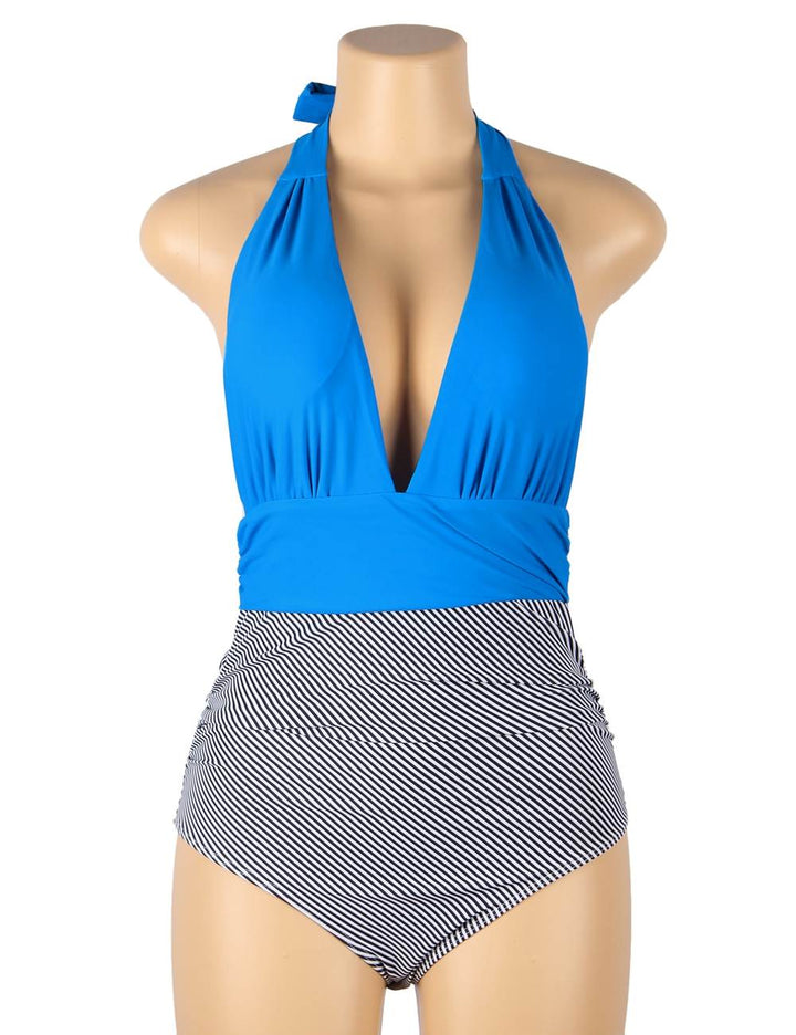 Plunge V Neck One-piece Swimsuit (2 Colors)