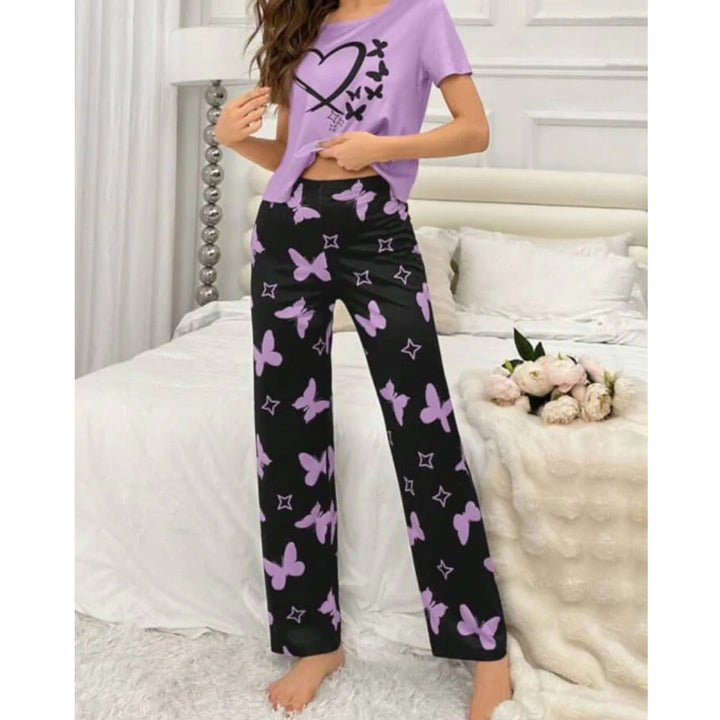 Sweet Dreams Collection Soft And Cozy Heart And Butterfly Printed Nightwear Set for Women