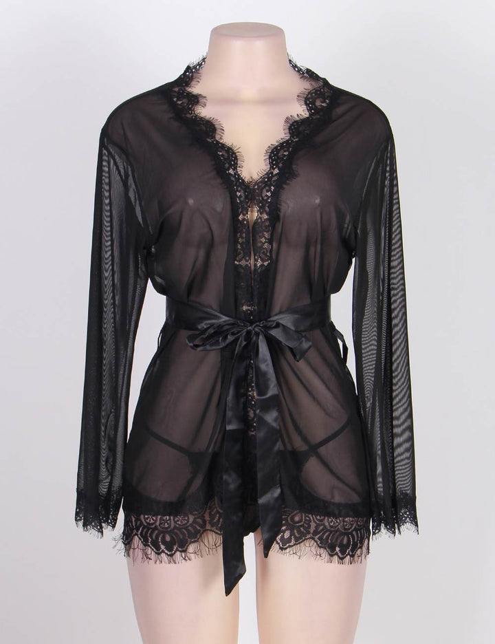 Made from a lightweight and breathable mesh fabric, this nightdress is soft to the touch and comfortable to wear all night long. The sleeve cuffs, front opening, and hemline are all adorned with exquisite eyelash lace, which adds a touch of luxury to the design.