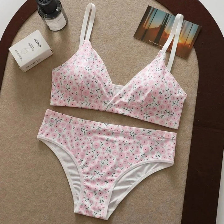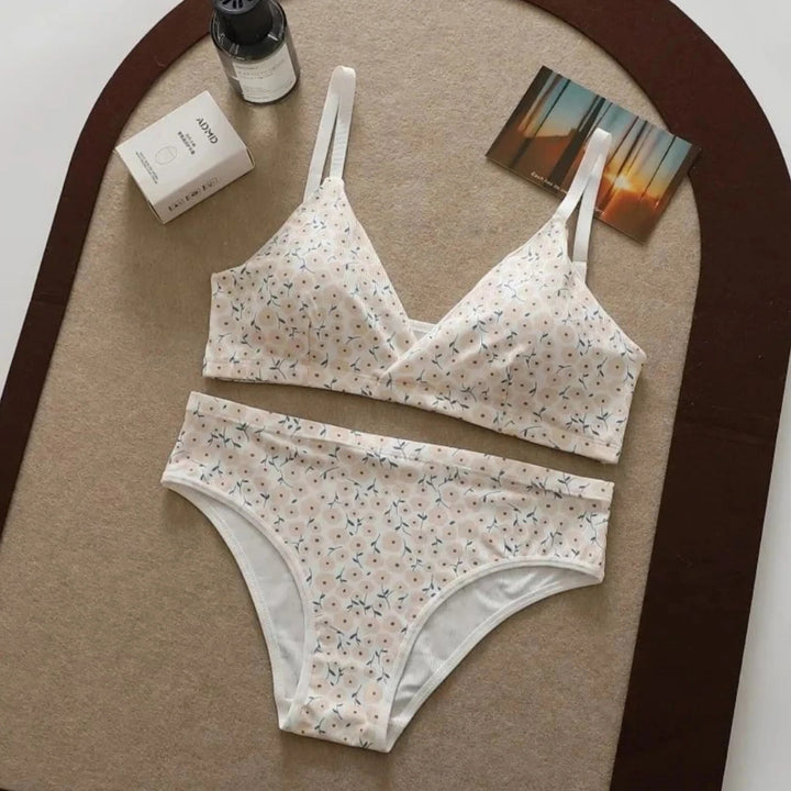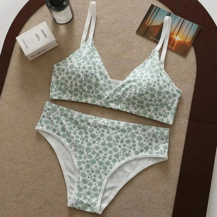 Daily Wear Comfort Collection Lightly Padded Leaf Design Bra and Matching Panty Set