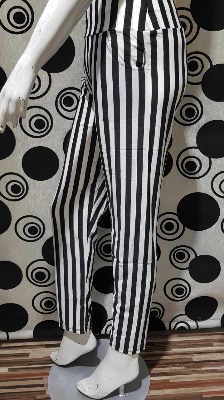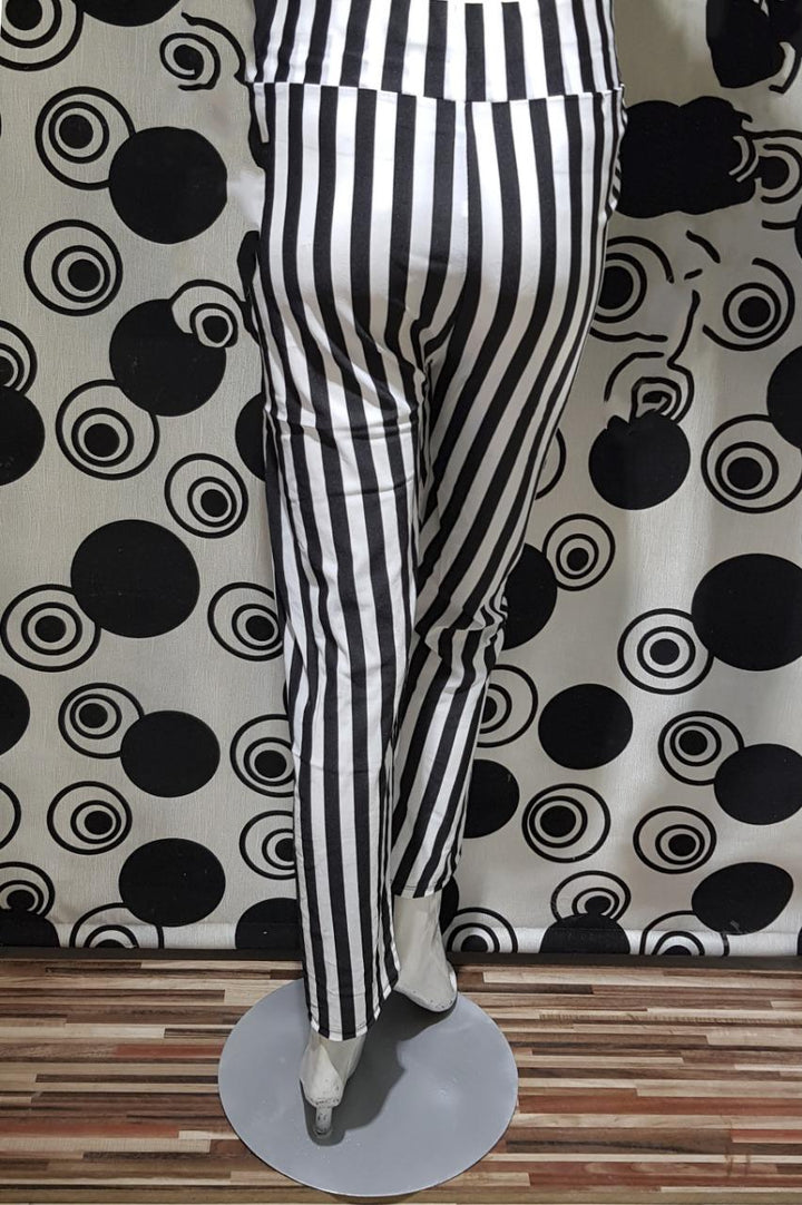 Women Black & White Thick Vertical Striped Trousers
